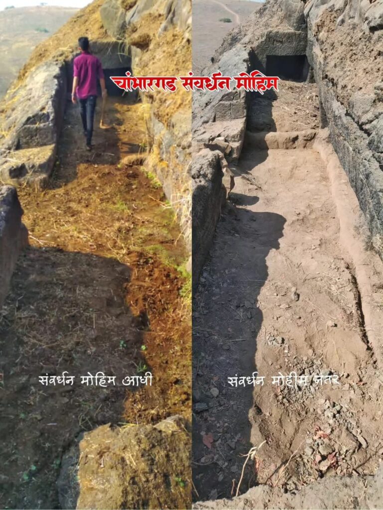 दुर्गवीर संस्थेमार्फत चांभारगडावर संवर्धन मोहीम यशस्वी; तरुणांचा उत्स्फूर्त सहभाग